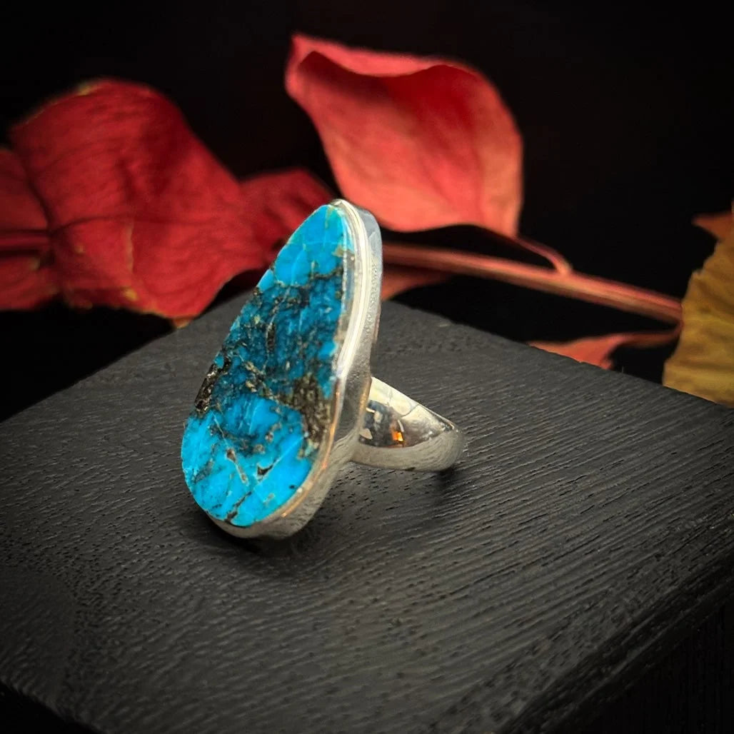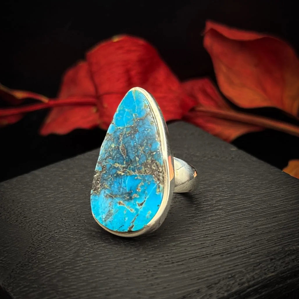 Set in 100% sterling silver, the ring is framed with delicate scalloped edges, adding just the right amount of personality while keeping the focus on the stunning turquoise. The sturdy silver setting ensures both durability and elegance.
